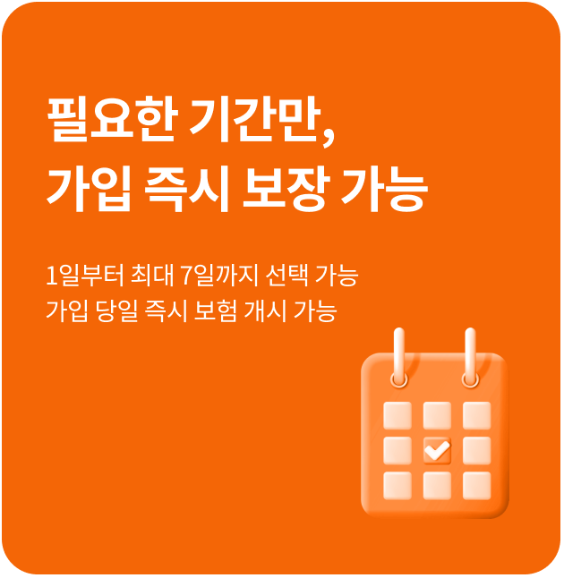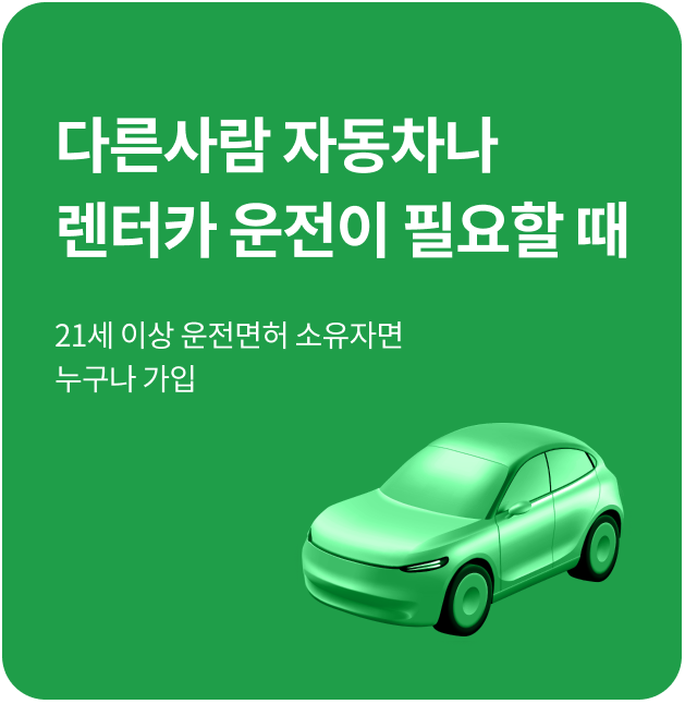 다른 사람의 자동차나 렌터카 운전이 필요할 때 만 21세 이상이 가입 가능하며, 1일부터 7일까지 원하는 만큼 선택할 수 있습니다.
